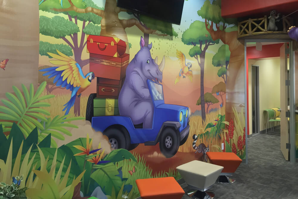 Our Jungle and Savannah-themed office transforms your child’s checkup into an adventure.
